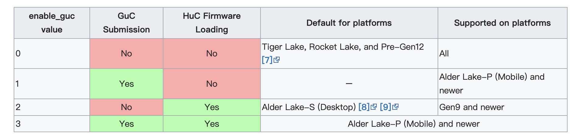 如果非N5105可参照下图确认guc支持情况,3代表同时开始GuC和HuC。更多可参照下文