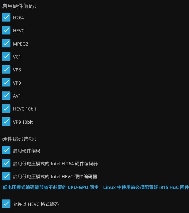 考虑到QSV方案里,Intel® iGPUs支持比较差,我们选择VA-API,当然这也是最简单的方案。